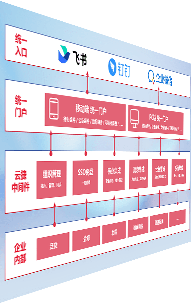 对协作平台提供支持服务,,支持企业应用与协作平台对接,,,包含组织同步、、消息集成、、待办集成等。。。。支持目前主流的协作平台:钉钉、、、、企微和飞书。。